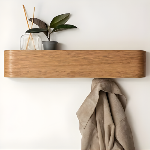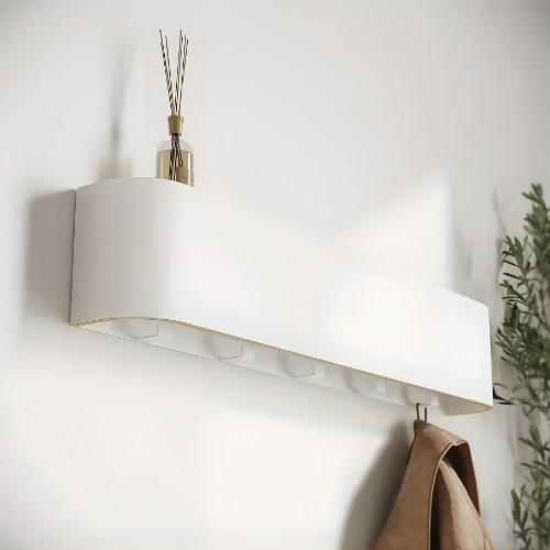 Idéal pour une entrée raffinée, une chambre minimaliste ou un bureau au style contemporain, ce porte-manteau mural en bois courbé offre une solution astucieuse pour suspendre sacs, vestes ou accessoires sans nuire à l’harmonie visuelle de votre pièce. Une fois les crochets repliés, il disparaît dans le décor comme une étagère décorative minimaliste.