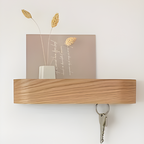 Les 5 crochets en métal se replient facilement lorsque vous ne les utilisez pas, laissant une simple ligne élégante en bois apparent. Moins de désordre visuel, plus de fluidité dans votre décoration.