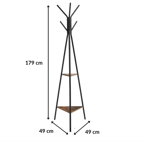 La base et les crochets sont fabriqués en acier noir, assurant stabilité et durabilité. Les tablettes en panneau MDF effet bois ajoutent une touche chaleureuse et naturelle à l’ensemble. Ce meuble s’intègre aussi bien dans une entrée contemporaine que dans un salon épuré.