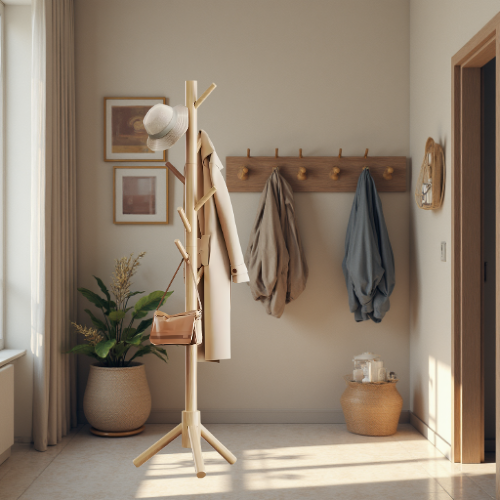 porte-manteaux muraux, sur pied et en bois pour s’adapter à tous les styles d’intérieur et à chaque besoin.