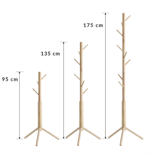 Équipé de 8 crochets disposés en quinconce à différentes hauteurs, il accueille vêtements, écharpes, sacs, chapeaux… Son trépied stable et robuste assure une bonne tenue au sol, même en zone de passage. Léger mais solide, il se déplace aisément pour s’adapter à vos espaces de vie, sans gêner.