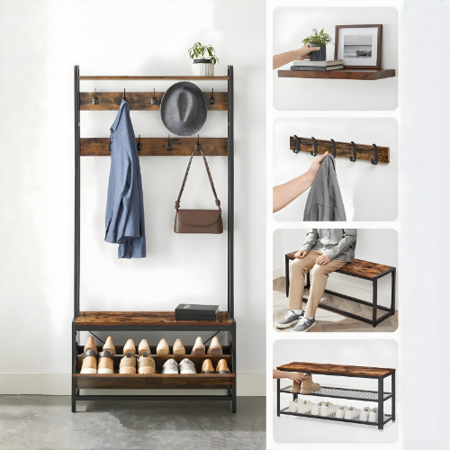 porte-manteaux muraux, sur pied et en bois pour s’adapter à tous les styles d’intérieur et à chaque besoin.