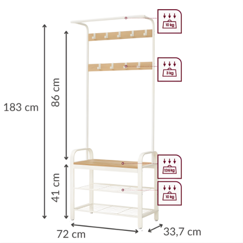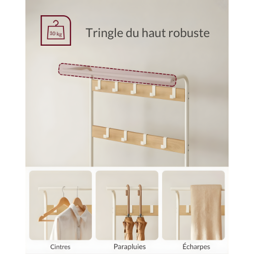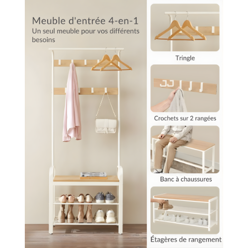 Un porte-manteau pratique garde manteaux, sacs et accessoires bien rangés à l’entrée, libère de l’espace et facilite le quotidien de toute la famille.
