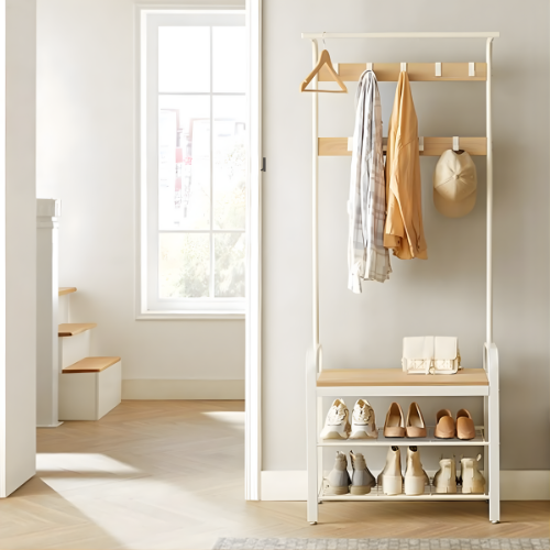 porte-manteaux muraux, sur pied et en bois pour s’adapter à tous les styles d’intérieur et à chaque besoin.